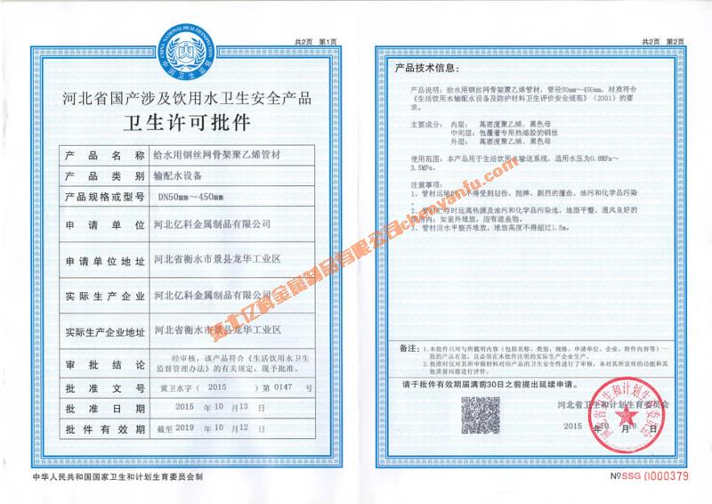 衛(wèi)生許可批件50-450