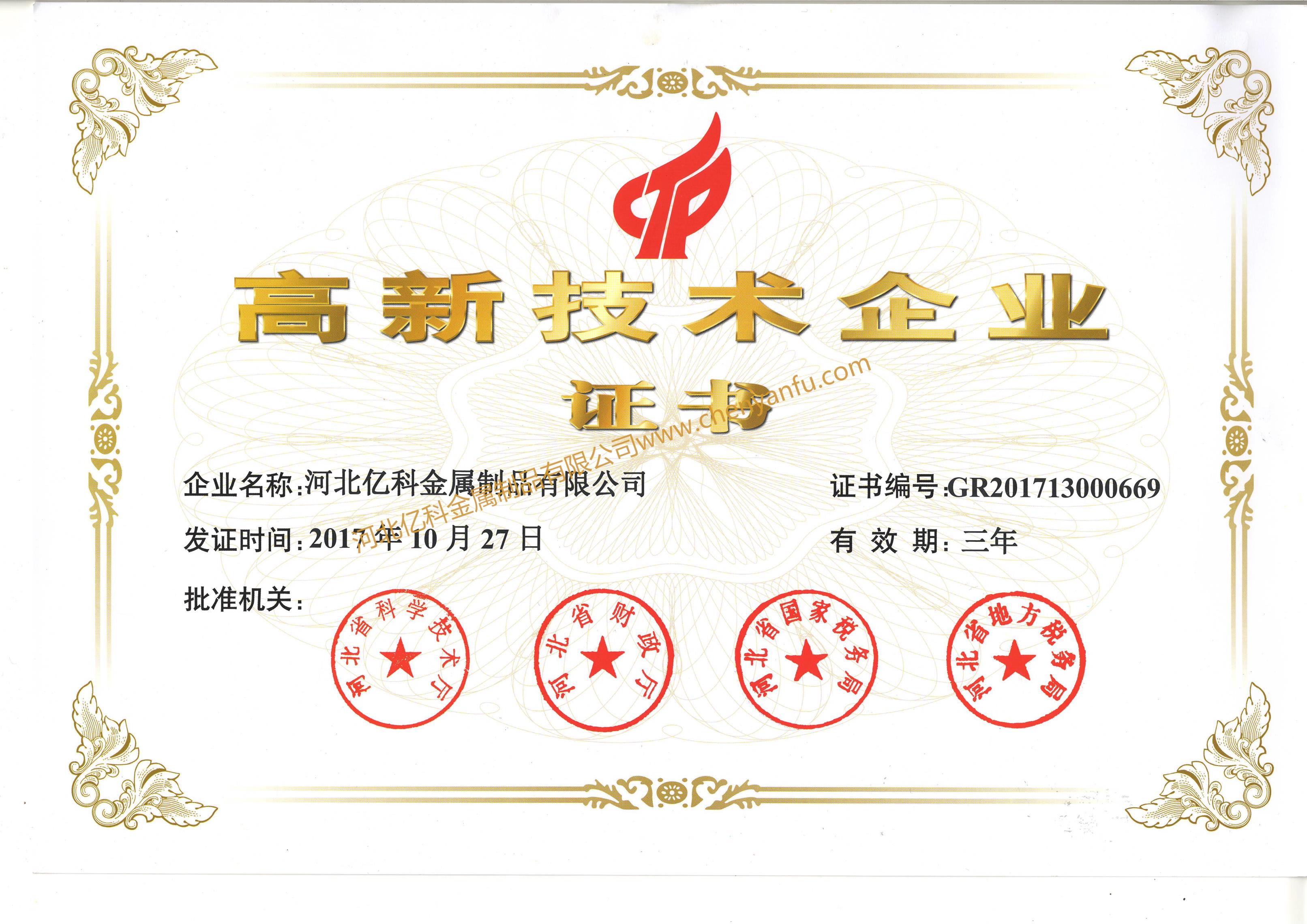 河北高新技術(shù)企業(yè)證書